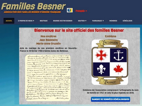 Site web moderne de l'Association des familles Besner qui intègre l'ancien site via sa rubrique Généalogie qui est maintenant un petit salon généalogique privé dont l'accès est restreint aux membres Besner AFB. Certaine rubriques du site sont accesibles au public. Bienvenue aux anciens et aux nouveaux membres Besner !